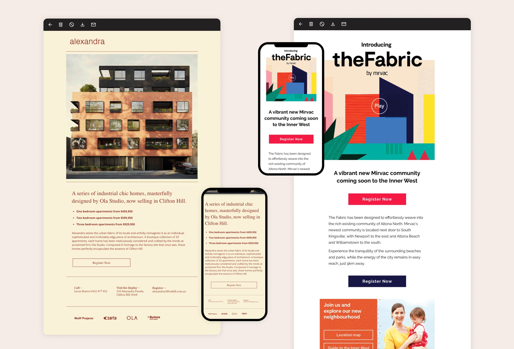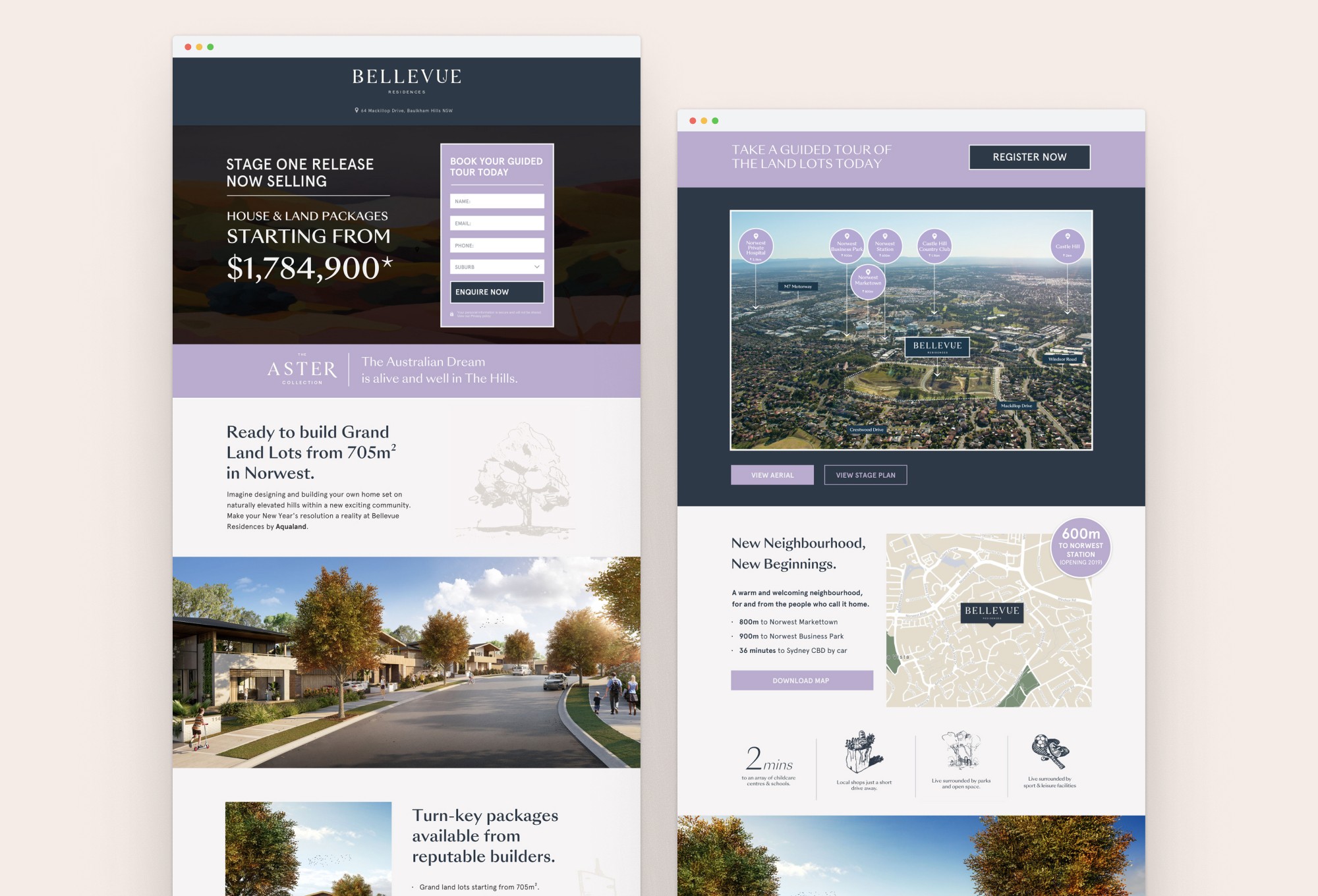 I designed lead capture pages for high-end developments and off-the-plan apartments to generate leads and drive conversion from potential buyers. Working closely with the Developer Sales team to gain an understanding of the developer’s goals and lead strategy, I worked with architectural renders and any pre-existing branding provided to create an engaging visual experience for users.